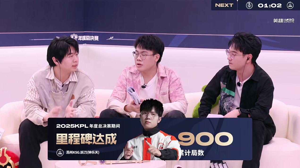 虎扑10月07日讯2025KPL年度总决赛第9日第2场,恭喜苏州KSG.妖刀(钟乐天)达成累计局数900局里程碑!