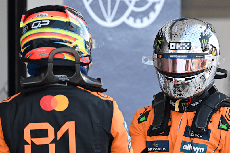 “或许迈凯伦车队现在应该让两位车手自由竞争,互不相让,车队零干涉。任何激烈的后果都将因需要完成比赛、获得积分、避免国际汽联的赛中处罚、防止维斯塔潘追上他们两人,以及在车队专注于2026年之际避免最新规格零部件耗尽而得到缓和。”