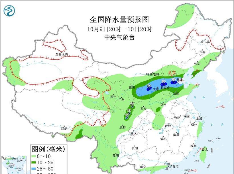 今天夜里起华北地区将迎来一轮10月罕见的强降雨过程,内蒙古中南部、陕西北部、山西