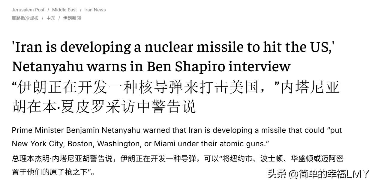 内塔尼亚胡喊话美以再袭伊朗:伊朗马上就有洲际导弹了,可打到华盛顿! 内塔尼亚胡正急着把美国拖进对伊朗的战火里。外界刚传出以色列将对伊朗发动新袭击的风声,这位以色列总理便不再掩饰,7日内接受采访时直接呼吁美国联手发起先发制人打击,理由听得人咋舌。 内塔尼亚胡表示,伊朗在研发能打到华盛顿、纽约和波士顿的洲际导弹与核武器,这是巨大危险”。这番话乍听煞有介事,细究起来却满是漏洞,简直是把世人的记性当摆设。 今年6月以伊冲突期间,特朗普曾高调宣称美军B-2轰炸机已彻底摧毁伊朗核武研发设施,当时内塔尼亚胡本人都公开承认了这一“战果”。短短几个月过去,伊朗反倒能研发出覆盖美国的洲际导弹了? 这说辞何止生硬,简直是自相矛盾到离谱。更具讽刺意味的是,伊朗最新公开的军事装备数据早已戳破了这个谎言。就在2024年9月21日的德黑兰军事阅兵上,伊朗亮相的“圣战”弹道导弹射程仅1000公里,最先进的“沙赫德-136B”无人机打击范围也才2500公里。 而洲际导弹的标准射程需达到5500公里以上,伊朗当前的技术水平与这一门槛还差着十万八千里。内塔尼亚胡口中“瞄准华盛顿的导弹”,分明是凭空捏造的“纸老虎”。 明眼人都能看出,喊打喊杀的背后,藏着内塔尼亚胡岌岌可危的政治处境。他的贪腐案听证会已箭在弦上,以色列国家检察官办公室11月12日明确拒绝了他推迟审理的请求,听证会定于12月2日举行,他本人必须出席。 这起案件从2020年就困扰着他,作为以色列首位在任期间接受司法审理的总理,一旦庭审正常推进,他的政治生涯可能就此终结。战争成了内塔尼亚胡拖延审判的唯一救命稻草。 巴以冲突爆发后,他一直以“国家处于战时状态”为由搁置司法程序,如今冲突有停火迹象,他自然坐不住了。以色列媒体早就点破玄机:内塔尼亚胡在推行符合个人利益的政策,刻意延长战争以无限期推迟审判。 有分析更直白指出,他的生存公式就是“保住权力等于不断发动战争,停战等于坐牢”,只要能制造新的全面冲突,就能把司法案件、预算案全按死在战时状态下。为了点燃新战火,内塔尼亚胡早已布下伏笔。 9月23日犹太新年祝酒时,他就放话未来一年要摧毁“伊朗轴心”,目标“不仅限于加沙地带”。如今拿“洲际导弹威胁”说事,不过是为袭击伊朗找个能拉上美国的借口。 毕竟以色列单独对伊动武风险极高,只有绑定美国,才能降低自身代价,也能让冲突规模足够大,为拖延审判创造条件。他算准了美国对伊朗的忌惮,试图用“美国本土安全”绑住华盛顿的战车。 可这种连自洽都做不到的谎言,真能骗过美国吗?恐怕未必。美国政界也清楚伊朗导弹的真实水平,更明白内塔尼亚胡的处境,只是在中东战略需求下,未必会戳破这层窗户纸。但这种基于谎言的联盟,本身就如空中楼阁,稍有风吹草动便可能崩塌。 内塔尼亚胡的算盘,中东各方其实都看在眼里。伊朗嘴上喊着还击,实际动作寥寥;其他国家也多按兵不动,毕竟谁都不愿成为他保住权力的棋子。只有普通民众在为这场政治算计买单,以色列国内通胀飙升,生活成本居高不下,而伊朗民众也面临着潜在战争的威胁。 军火商赚得盆满钵满,普通人却要承受战火与贫困的双重重压,这何其讽刺?更值得警惕的是,内塔尼亚胡的冒险可能引发连锁反应。中东本就处于动荡边缘,以伊冲突一旦升级,很可能牵扯多个国家,让整个地区陷入更大混乱。 这种为个人政治命运赌上地区和平的做法,早已突破了基本的政治伦理底线。他把自己绑在“战争火箭”上,要么借战火升空,要么彻底爆炸,可遭殃的却是无数无辜民众。 内塔尼亚胡还在对着镜头渲染“伊朗威胁”,可他眼中的焦虑早已出卖了自己。所谓的“洲际导弹危机”,不过是他拯救政治生命的道具。这场用谎言堆砌的战争叫嚣,不仅暴露了他的利己与短视。 更让外界看清了某些政治人物为保权力不惜制造灾难的真面目。中东的和平曙光刚现端倪,就可能被这样的政治算计再次熄灭。内塔尼亚胡能否靠新战火拖延审判尚未可知,但可以肯定的是,靠战争维系的权力终究不会长久。 当谎言被戳破,当战火带来的苦难超出民众承受极限,他终将为自己的算计付出代价。而中东的和平之路,或许还要在这样的政治迷局中,多走一段弯路。