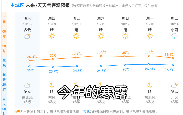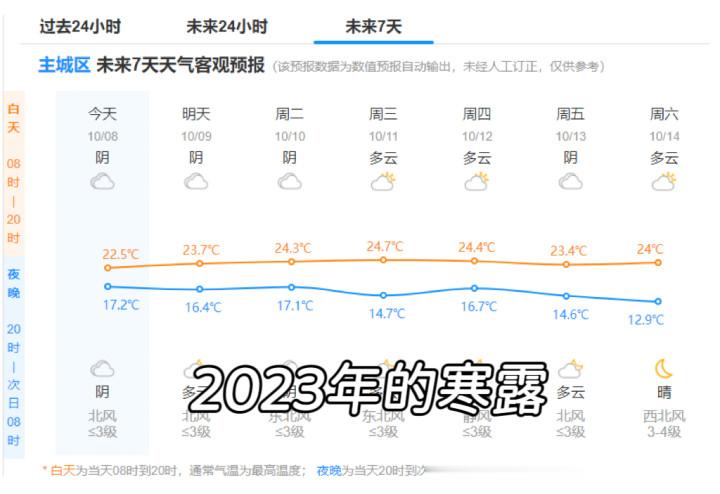 好奇地查了下前两年的寒露天气,发现2023年和2024年的10月8日,杭州最低气温都已经降到了16℃左右,而最高气温都还没有今年的最低气温高。