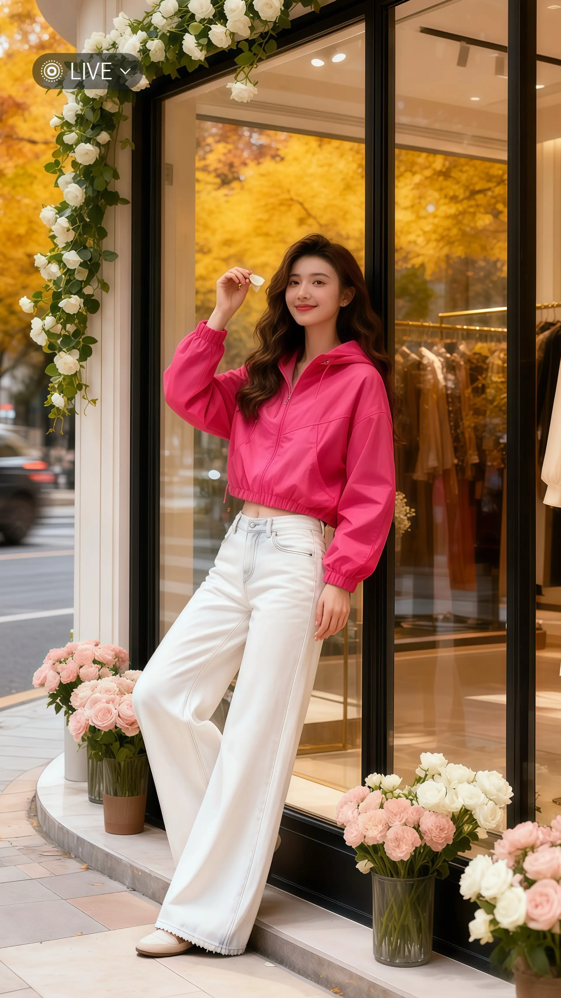 她穿着时尚短款冲锋衣外套,在高级感女装店内开启了一场秋日时尚之旅。这件冲锋衣以其利落的剪裁和亮眼的色彩,瞬间成为全场焦点,短款设计巧妙拉长身形比例,尽显干练与活力。面料兼具防风与透气性能,在微凉的秋日里,为她带来恰到好处的温暖守护。店内轻奢风的装修与窗外金黄的秋景相互映衬,营造出一种时尚与自然交融的独特氛围。她时而驻足于挂满时尚杂志的黑色架子旁,品味着最新的潮流资讯;时而走到摆放着同款鞋子的无头假人模特前,感受着整套穿搭的魅力。这件冲锋衣不仅是一件实用的户外单品,更是一件能彰显个性与品味的时尚利器。无论是在店内穿梭,还是望向窗外那虚化的秋日街景,她都宛如一道亮丽的风景线,完美诠释着时尚与实用并存的秋日穿搭美学。