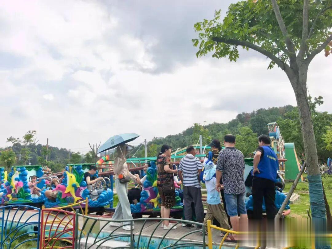 火山攀岩上,孩子们鼓足勇气向上攀登;彩虹滑道中,游客们体验着俯冲的快感;秋千组合旁,亲子间的欢乐满溢;旋转木马转出童话氛围,旋转飞机伴着节奏上下起伏,大人小孩都找回了童年乐趣;溪水摸鱼处,游客们卷起裤脚踏入清凉溪水,开启“捕鱼大战”;萌宠互动区,孩子们近距离抚摸、喂食小动物,拍下一张张萌趣合影……