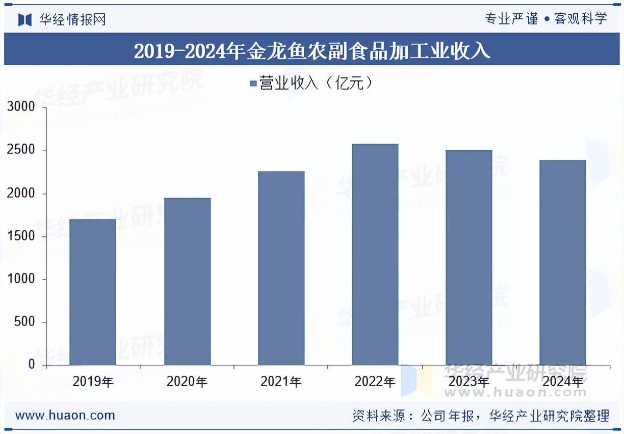 金龙鱼的主要产品包括厨房食品和饲料原料及油脂科技两大类,公司聚焦两大主业,深耕农产品和食品加工产业链,持续为消费者提供营养、健康、安全、优质的粮油产品和相关的上下游产品。根据公司年报显示,2024年金龙鱼农副食品加工业收入为2388.66亿元。