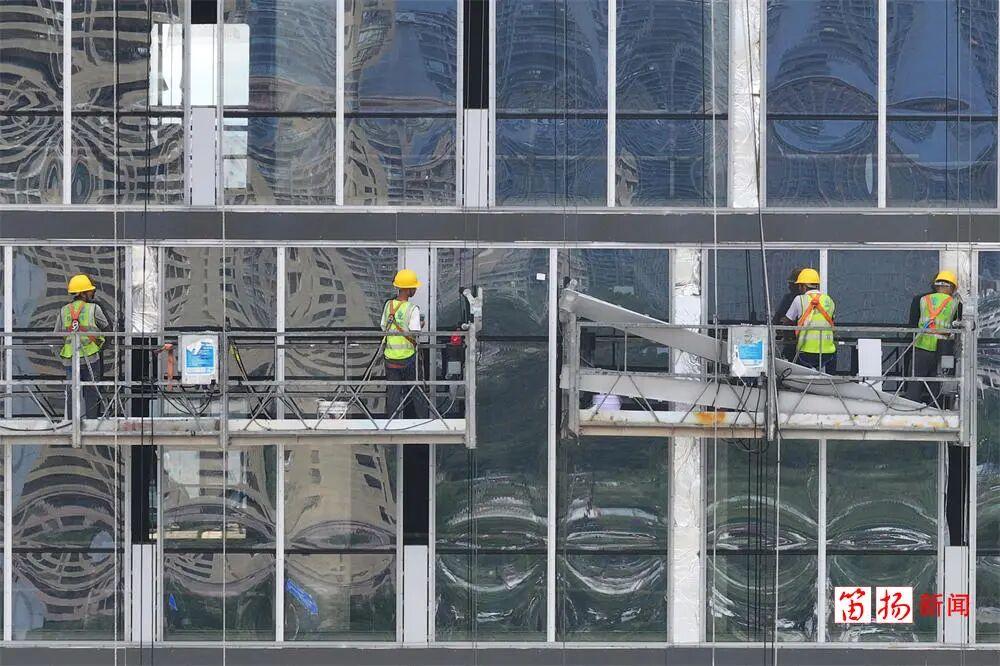 记者在绍兴柯桥未来医学中心项目现场看到,数幢高楼已拔地而起,“人”字形建筑轮廓日益清晰。工人们紧张有序地作业,推进项目建设。高空吊篮中,工人们两两一组正协同安装玻璃幕墙,各工序紧密衔接。