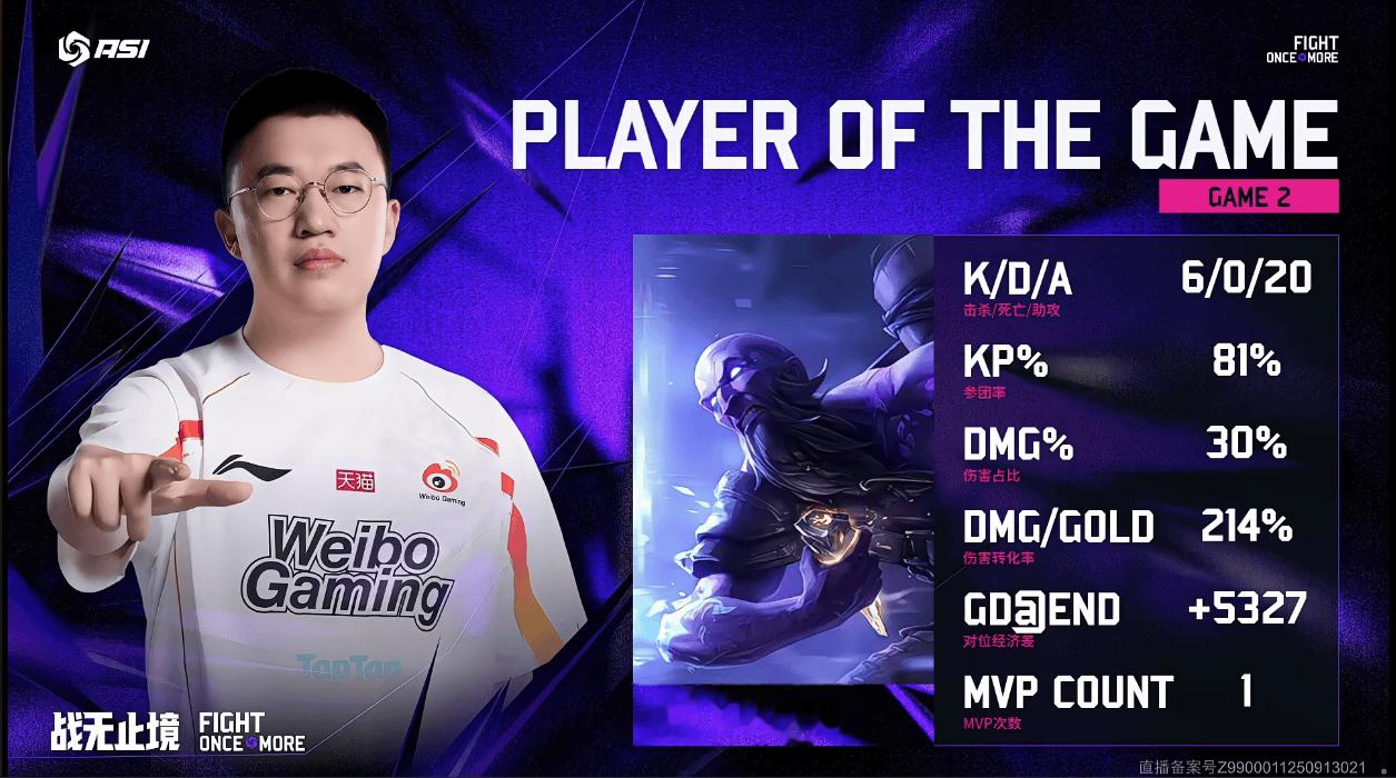 Xiaohu使用瑞兹打出6/0/20战绩,斩获WBG对阵DK第二局MVP