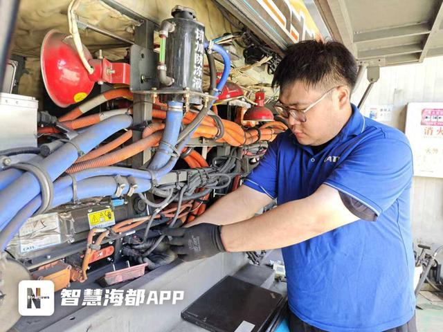 维修车间的工作从不轻松,尤其到了夏秋季节,高温更是给作业增加了难度。电池维护时,叶林凡需要在闷热的车厢或车间里长时间弯腰操作,一天下来要喝2~3升水,身上的工作服湿了又干、干了又湿。他还记得刚入职那年,因为不适应高强度的工作节奏和闷热环境,曾中暑过一次,但想到父亲在驾驶座上日复一日的坚守,想到爷爷奶奶对公交事业的执着,他没有打退堂鼓,反而慢慢摸索出适合自己的工作节奏,如今他早已习惯了这份忙碌与艰辛。