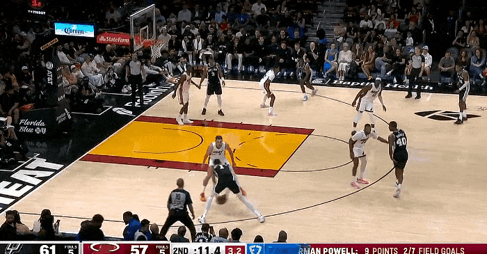 第二节比赛中,文班亚马漂移跳投不中,上半场5中2得到6分5助攻。