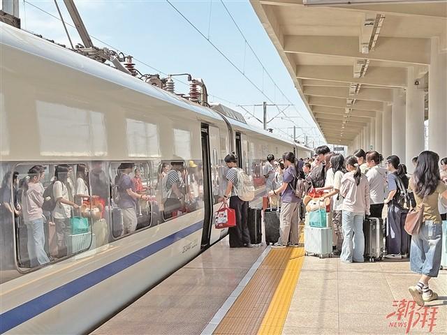 据悉,今年铁路国庆中秋假期运输自9月29日开始,至10月10日结束,为期12天。为更好满足旅客出行需求,铁路部门采取高峰线开行方案,采用动车组重联运行、增开夜班列车等多种方式,动态优化运力安排,适当增加往返广州、深圳、福建等方向的运力投放。截至10月6日,潮汕站在双节假期前8天累计开行动车组列车2562列,日均超320列。
