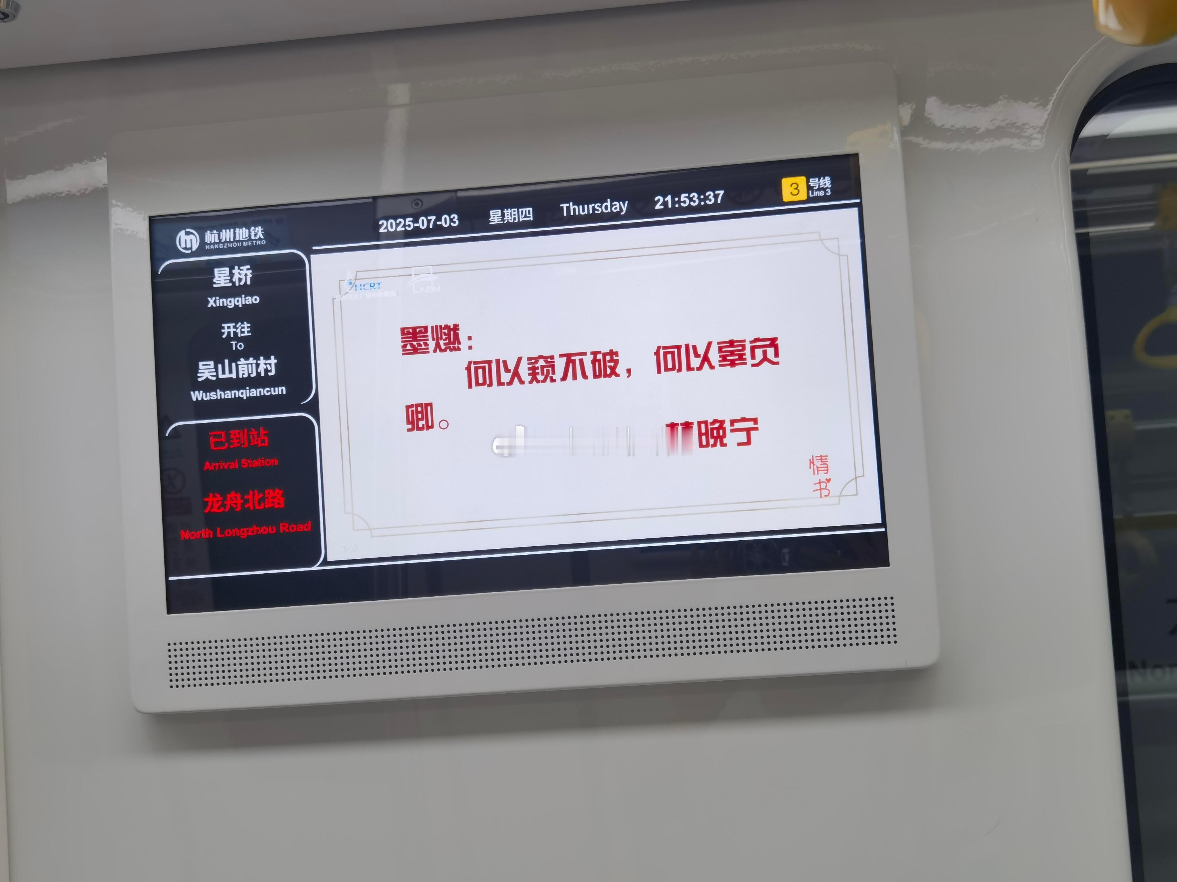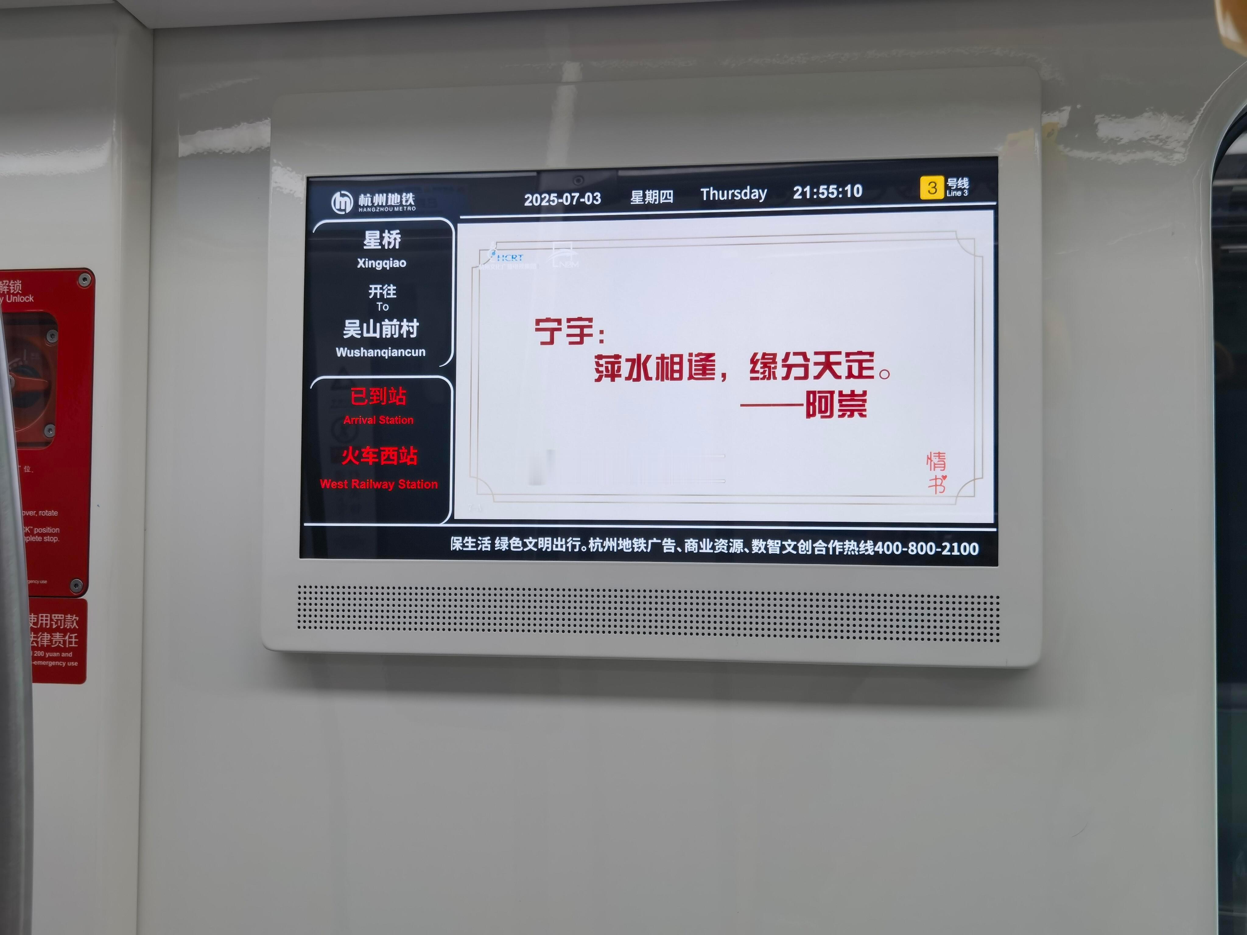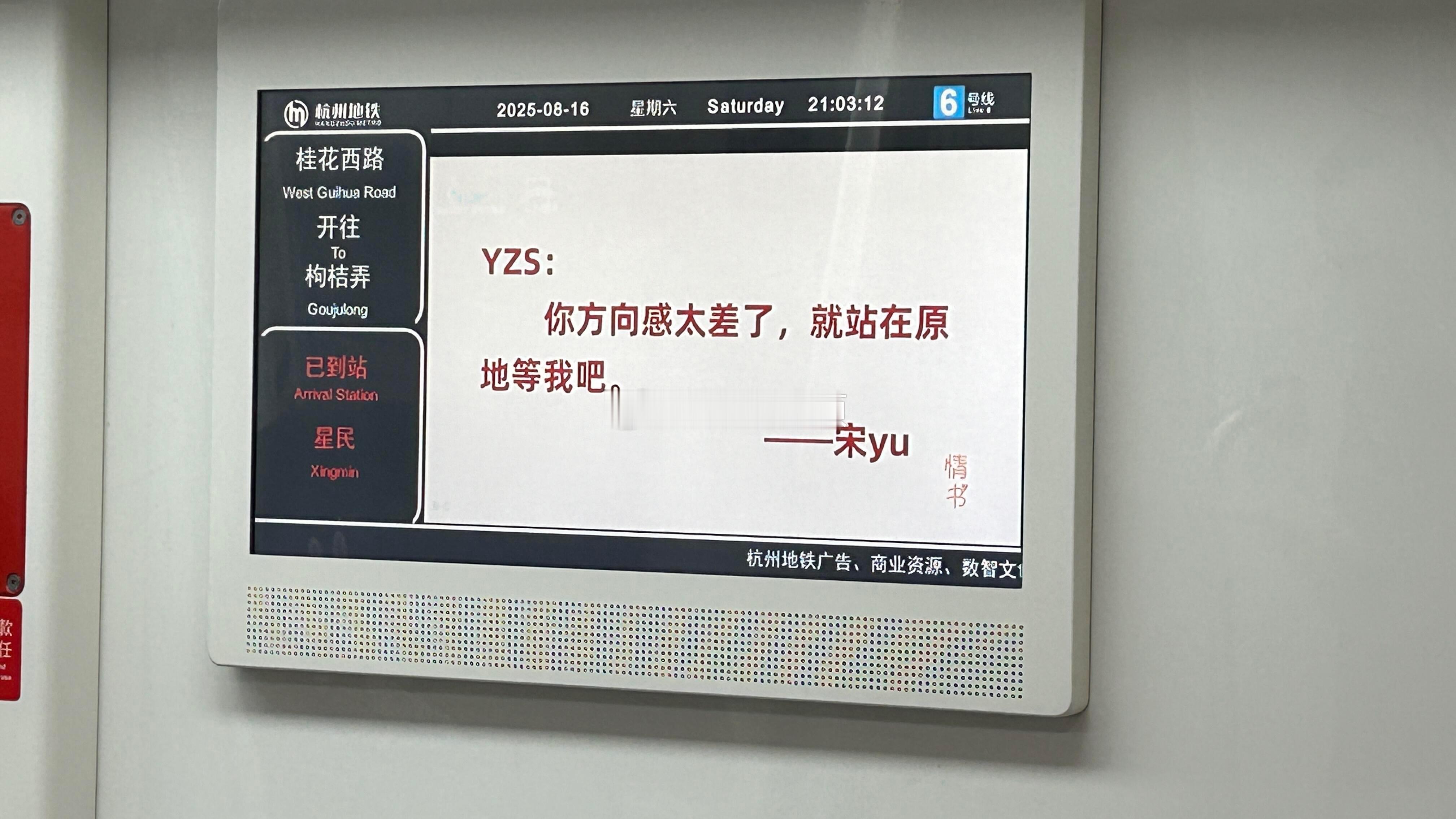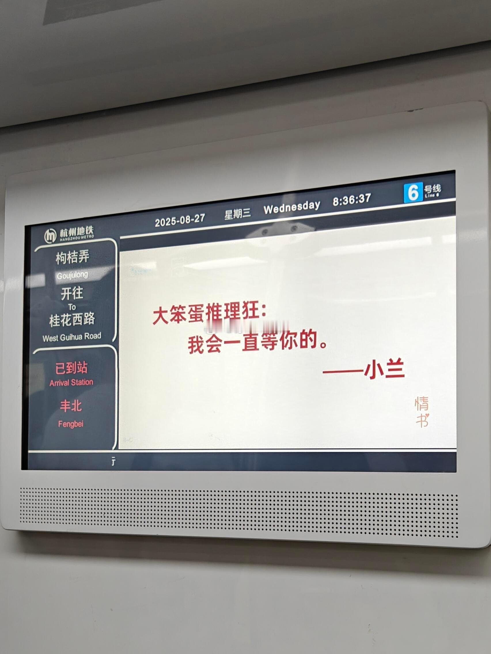 杭州地铁情书我熟杭州地铁里的情书💌