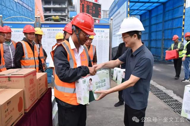 在第八个“中国农民丰收节”期间,为弘扬“庆农业丰收·享美好生活”主题精神,潍坊奎文区总工会联合奎文区住建局、潍坊创投集团于9月28日走进“东风里”项目建筑工地,开展农民工走访慰问活动,将工会的温暖传递到一线农民工心中。