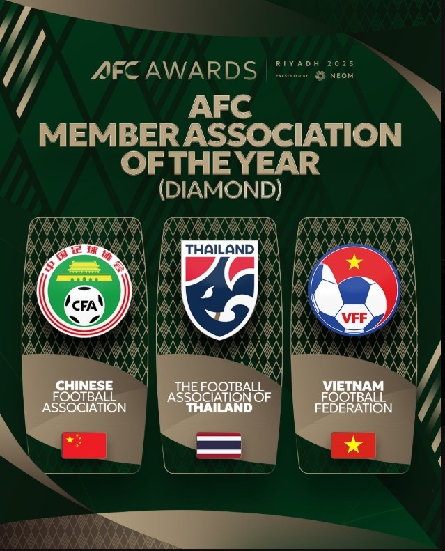 亚足联公布白金奖、钻石奖、黄金奖和红宝石奖的提名名单,旨在表彰推动足球运动发展的会员协会。在钻石协会提名名单中,中国足协在列,另外两个提名协会是泰国足协和越南足协。2025年亚足联颁奖典礼将于10月16日在利雅得进行。