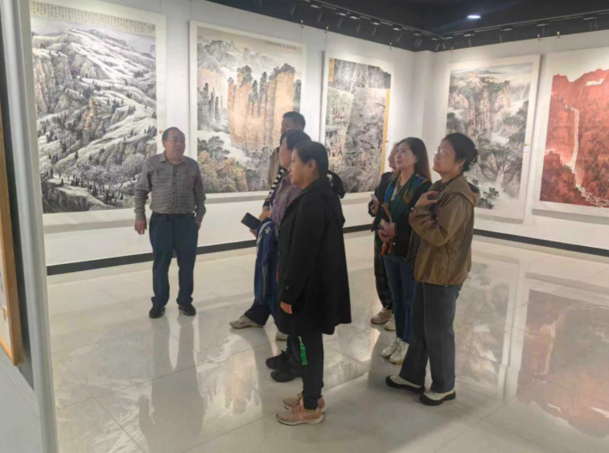 10月6日,新乡砚岚画院一行艺术家专程前往漯河市郾城区美术馆,观摩《丘壑万象》山水画专题展。此次活动以艺术交流为纽带,成功开启了一场跨越地域的“山水对话”,为两地艺术从业者搭建了学习互鉴的平台。