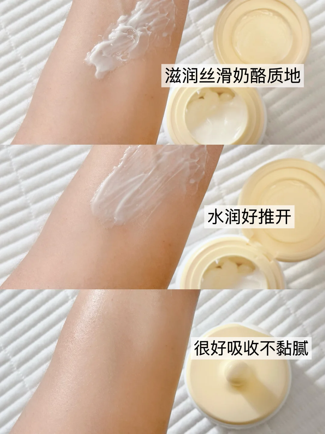 滋润奶酪🧀️质地,上脸一抹就化开,吸收速度超快,完全不黏腻,一年四季都适合!