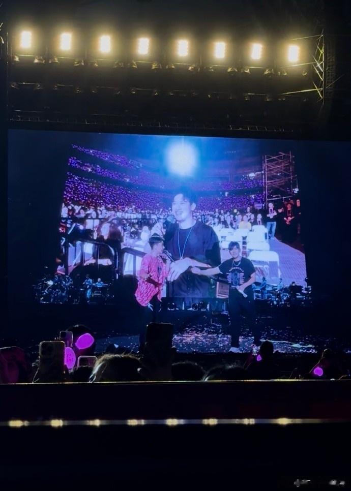 周冠宇在社媒写道:“太太太紧张了!和杰伦哥在演唱会合唱了!(我的耳麦为什么没声音啊啊啊)”