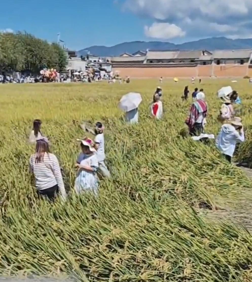 近日,有网友发视频吐槽云南大理喜洲古镇的游客是“城巴佬”。当地一片3000亩的金色稻田因免费开放,游客可以在田埂上拍照打卡而爆火。虽然现场设有步道和警示牌,但有不少游客为了出片,直接踏入稻田,大片稻谷倒伏,眼看就可以收割的水稻就这样被糟蹋了。 假期期间,有城里人去农村的果园“捡秋”,被主人碰到,借口说以为是野生的,哪里会有大片的“野生”的打理的井井有条的板栗果园呢? 为了黄金周,当地农民特意错开了水稻的收割时间,想着节日过后就可以丰收了。没想到, 辛苦劳作一季,稻谷就损失大半。 不认识稻谷可以理解,但是警示牌上的字不认识吗?出片比粮食还重要吗?才吃饱几天,就这样糟蹋粮食,真应了网友那句话:袁隆平让你们吃太饱了!
