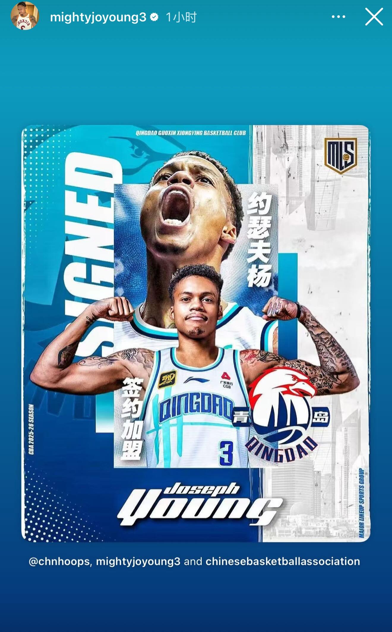 虎扑10月09日讯前福建男篮外援约瑟夫-杨在个人社媒中自宣,将在下赛季加盟青岛男篮。