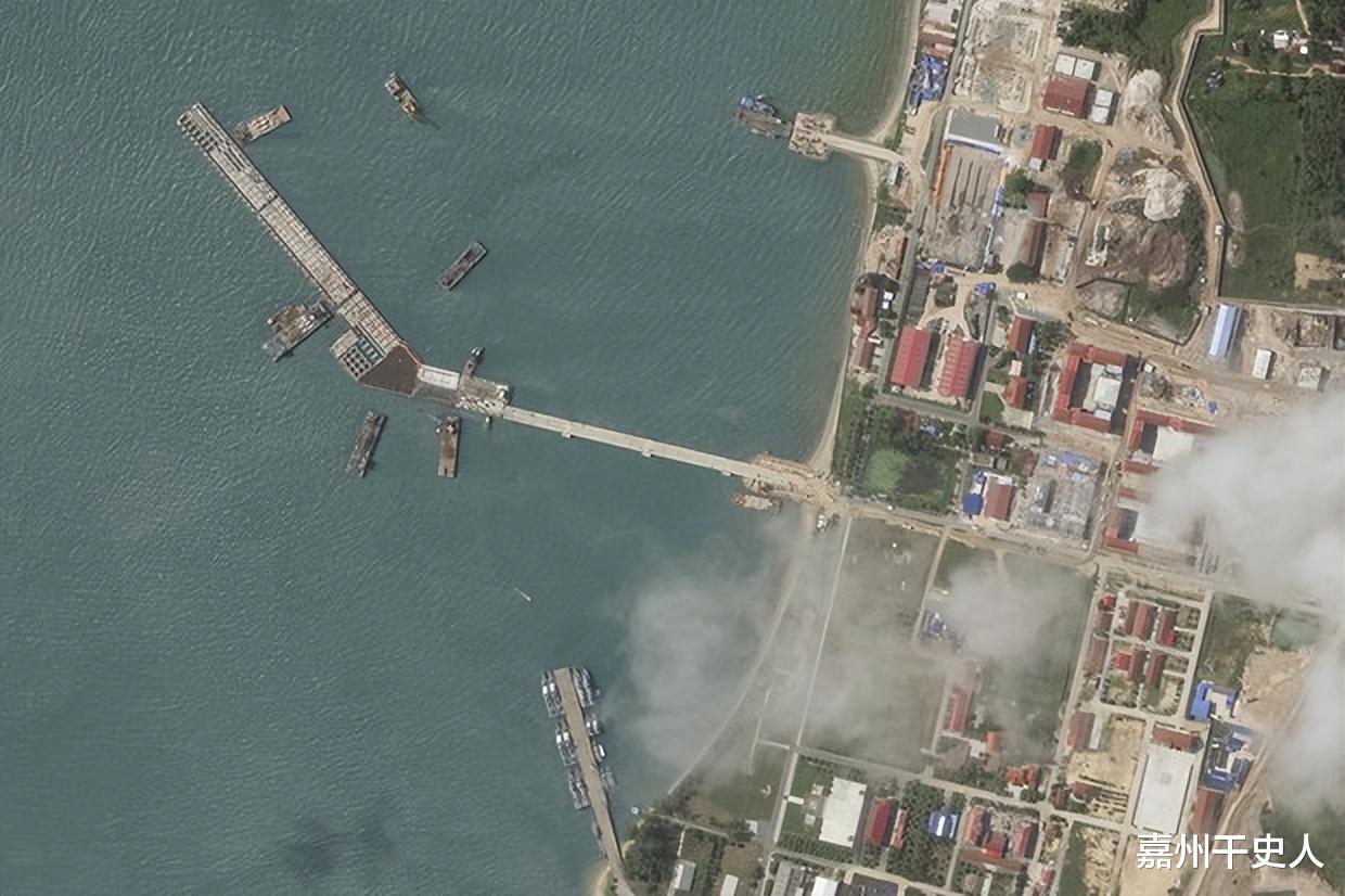 早在德崇富南运河开工之前,柬埔寨的云壤基地建好了。云壤基地完全是按照停靠航空母舰的标准而设计的,基地码头长335米,与吉布提基地码头非常相似,可以停靠任何大型战舰。