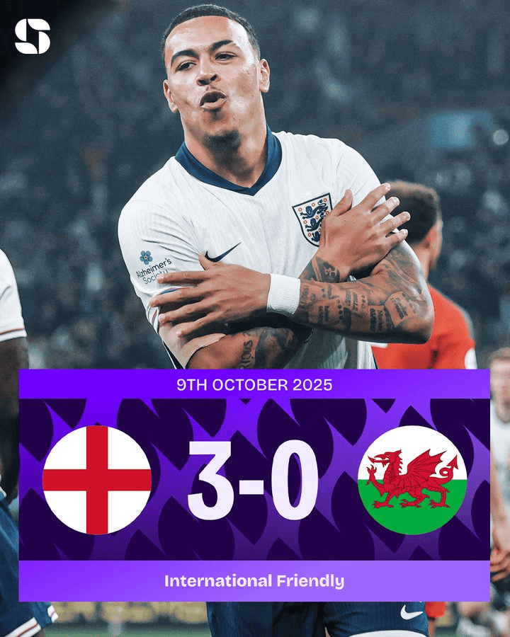 虎扑10月10日讯国际足球友谊赛,英格兰3-0击败威尔士。