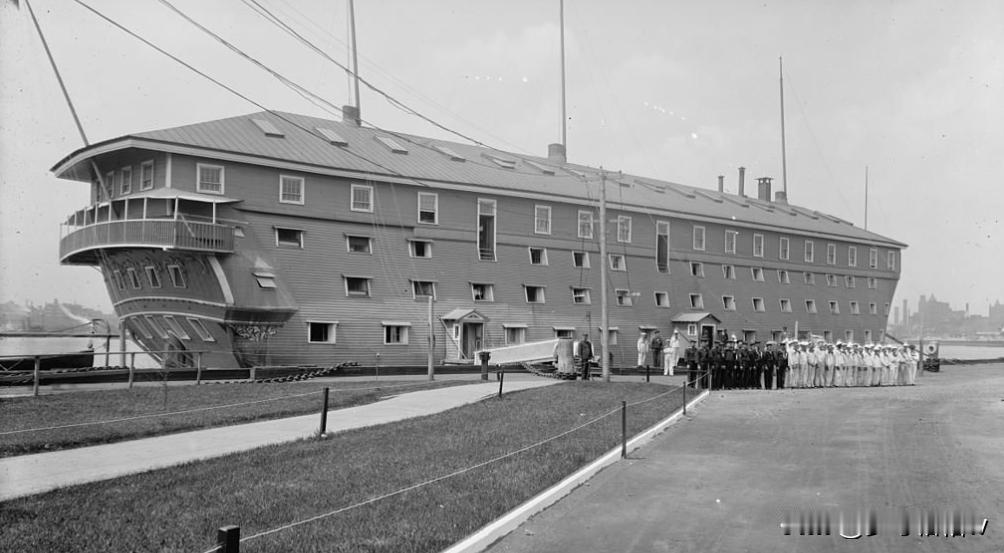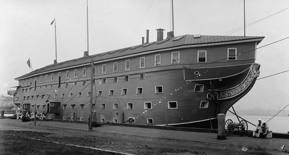 如果说有哪艘军舰一辈子没有出海执行作战任务那么对该舰来说真是莫大的悲哀。 但是,花旗国海军历史上就有这么一艘军舰。 具体的说这艘不幸的花旗国军舰是1848年下水的、装备74门火炮的“佛蒙特”号战列舰。从照片上看得出“佛蒙特”号说传统的木制风帆军舰,由于当时海军技术进步迅速,所以在“佛蒙特”建成后不久就落后了,而在该舰建成后,从1964年算起的整整37年时间,它一直作为军械库停留在纽约布鲁克林的海军码头直到1901年被拆毁,此间该舰没有机会作为军舰出海执行作战任务。 不过可以想见,对1901年的花旗国拆船业企业来说,拆毁一艘木制风帆军舰并不是一件感到高兴且有利可图的事情! 另外,图3是“1898年“佛蒙特”号和“新奥尔良”号巡洋舰停泊在一起的照片,看得出,“新奥尔良”号已经是一艘现代化的蒸汽金属军舰,和“佛蒙特”号对比一下明显是两个时代的东西。