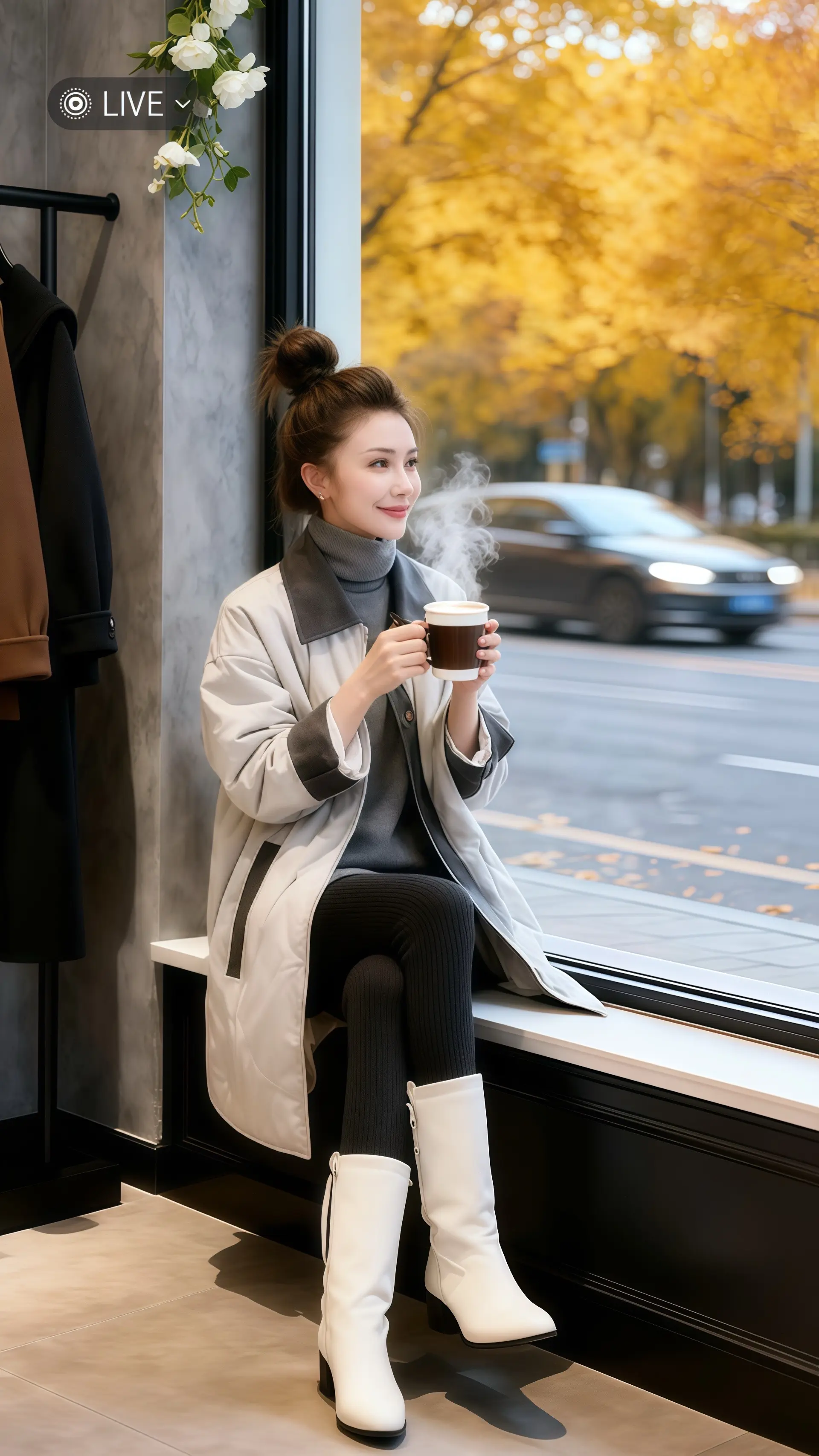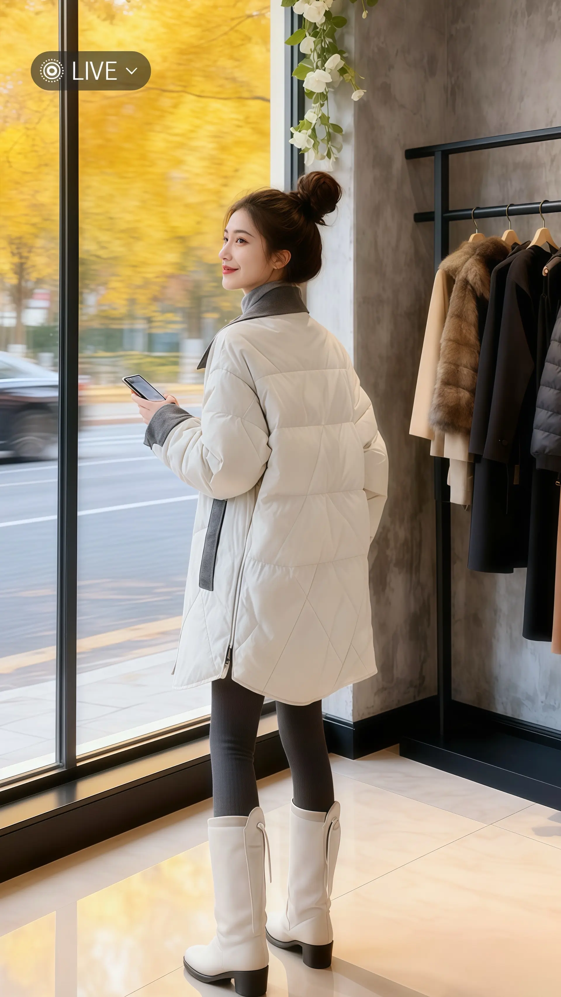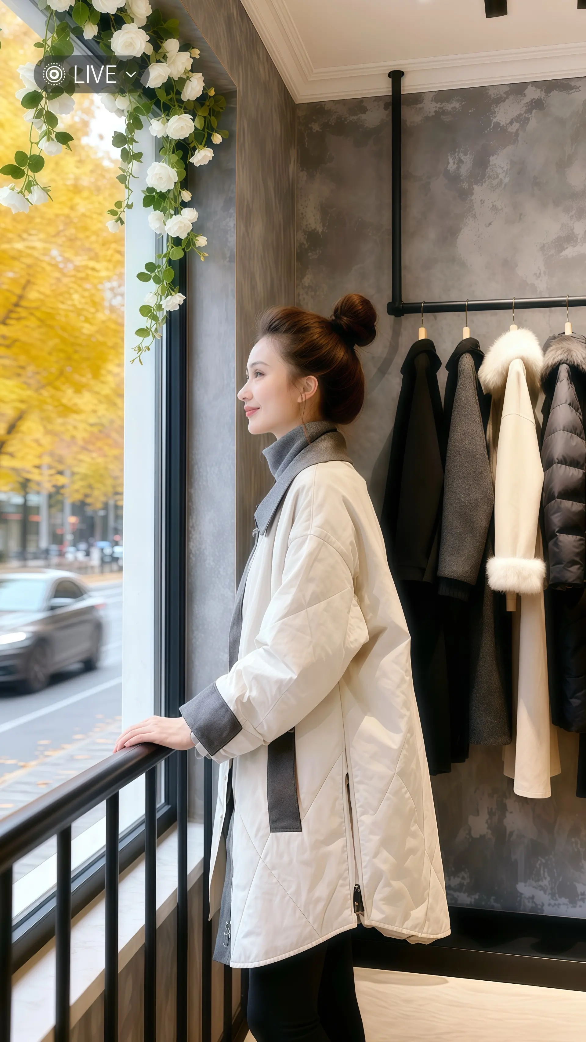 她穿着时尚显瘦棉服,是秋冬新款的大码设计,在高级感女装店的轻奢氛围里,将松弛与精致巧妙融合。棉服的剪裁利落又藏肉,在复古灰墙与精致陈设的映衬下,更显质感。她望着落地窗外的秋日盛景,金黄的树叶在微风里轻舞,街道上的车影朦胧如电影画面。这份穿搭,既适配秋冬的微凉,又在女装店的雅致空间中,把大码时尚的底气与秋日的浪漫娓娓道来,每一处细节都是对“显瘦又高级”的完美诠释,让秋冬穿搭的魅力在这一方天地里尽情绽放。