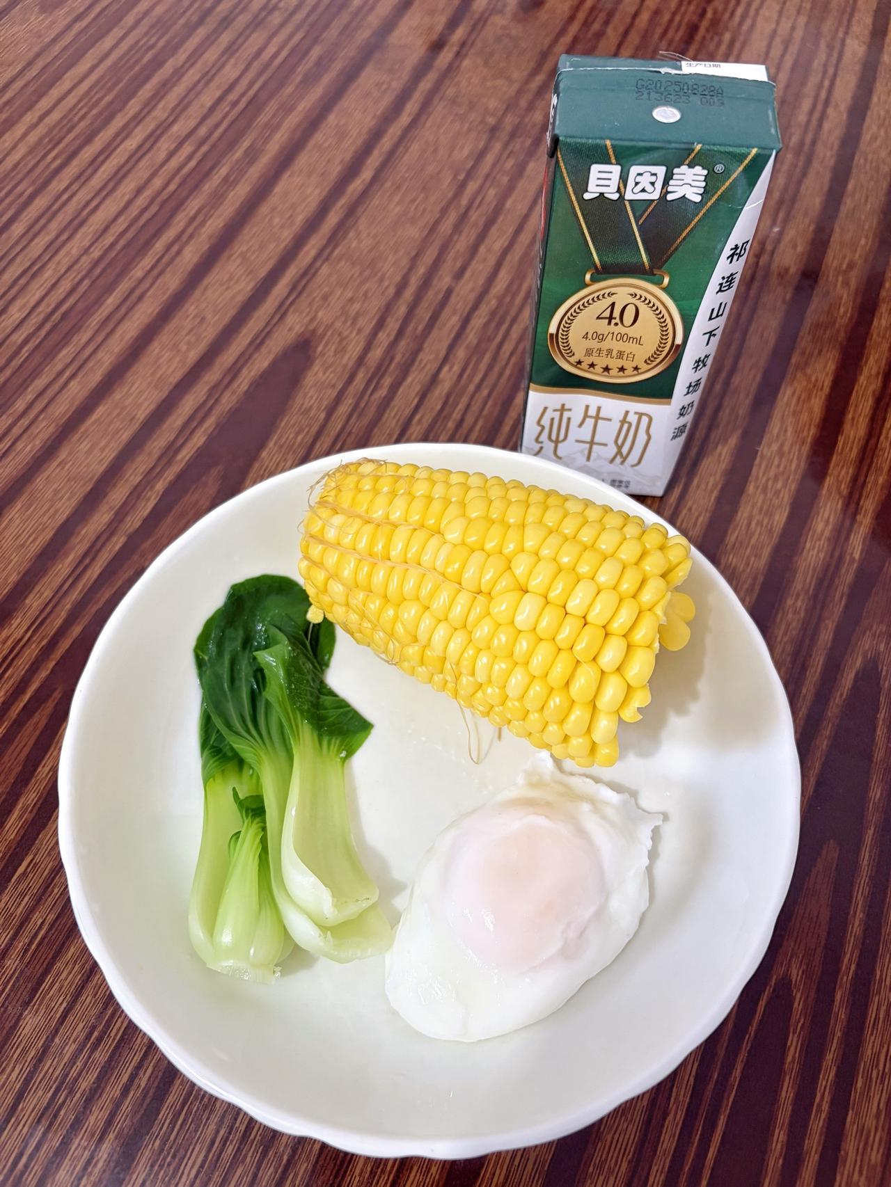今日早餐:鸡蛋+玉米+青菜+牛奶 美好的一天从减脂早餐开始,加油呀 体重管理体重