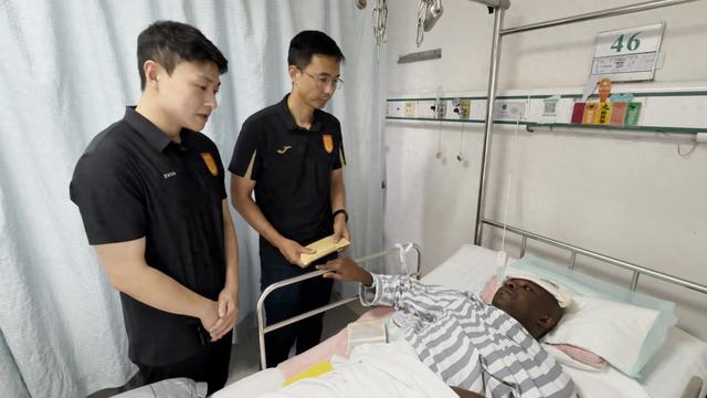 昨日,重庆铜梁龙足球俱乐部从广西平果足球俱乐部获悉,阿萨莫阿先生手术成功。为表达我们的关切与祝福,今天下午,重庆铜梁龙足球俱乐部总经理李平、总经理助理姚晟一行专程前往广西医科大学第一附属医院探望阿萨莫阿先生,并送上慰问。