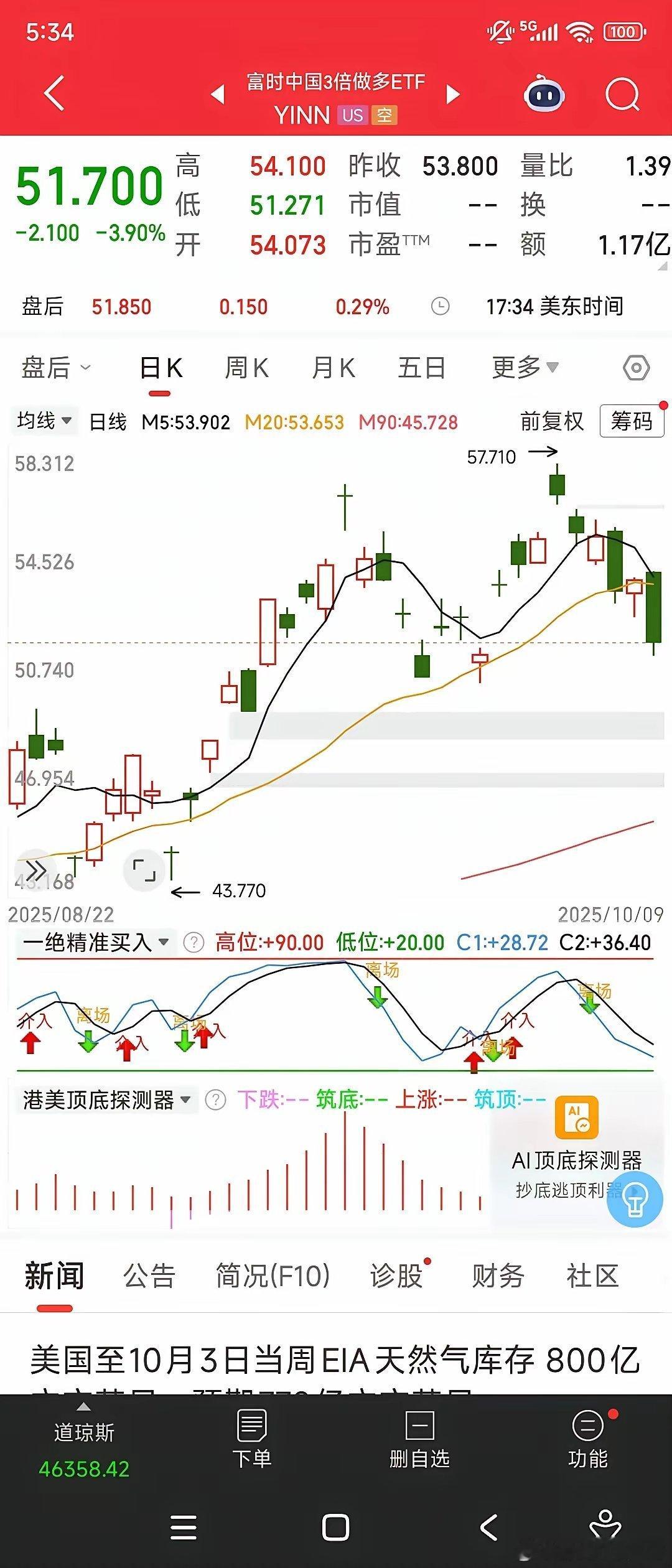 不利因数,外围全部大跌啊!三倍做多暴跌3.9%,富时50大跌1.1%,道琼斯暴跌0.51%,而英伟大涨新高195了,撕裂行情啊!