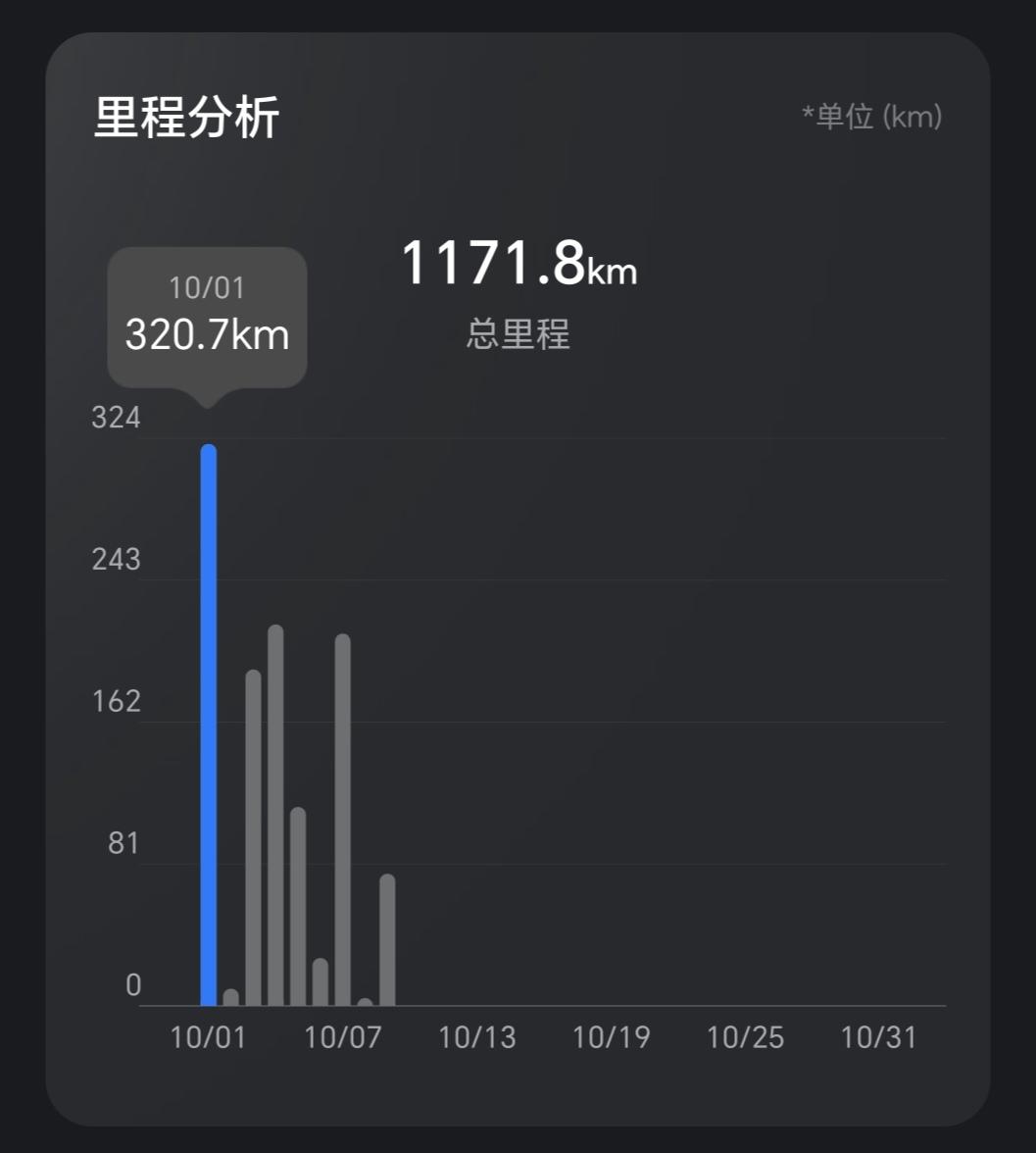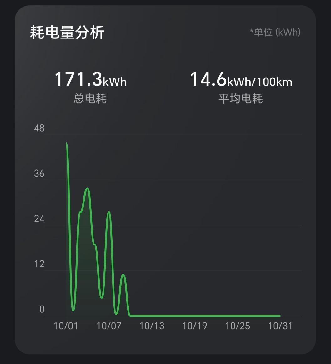 这个国庆开的尚界H5,理了一下电耗表现,一共消耗171.3度电,开了1171.8km,平均电耗14.6kWh/100km,电耗很稳定,最高的一次是23.3kWh/100km,是因为天气太热,小朋友在车内吹空调等人。绝大多数电耗都维持在16以下,你们觉得这个电耗如何呢?【来自懂车帝车友圈】