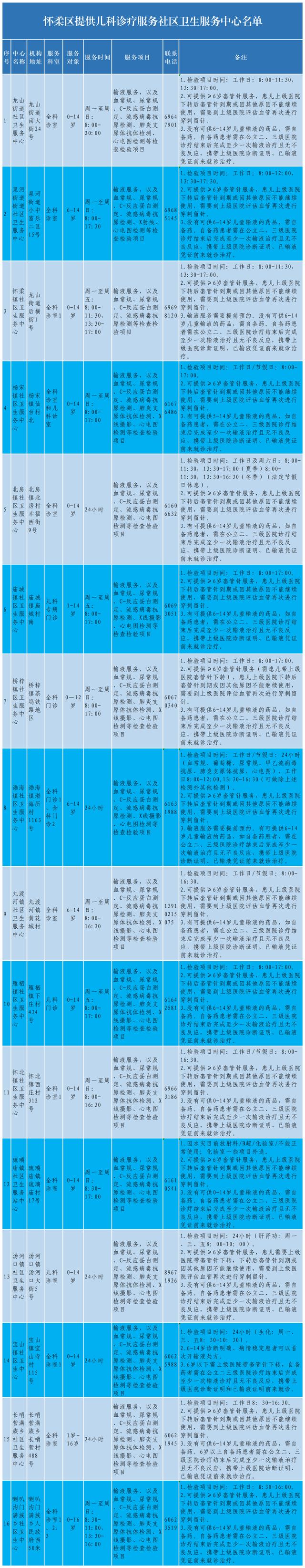 怀柔区16家社区卫生服务中心全部可提供儿科诊疗服务