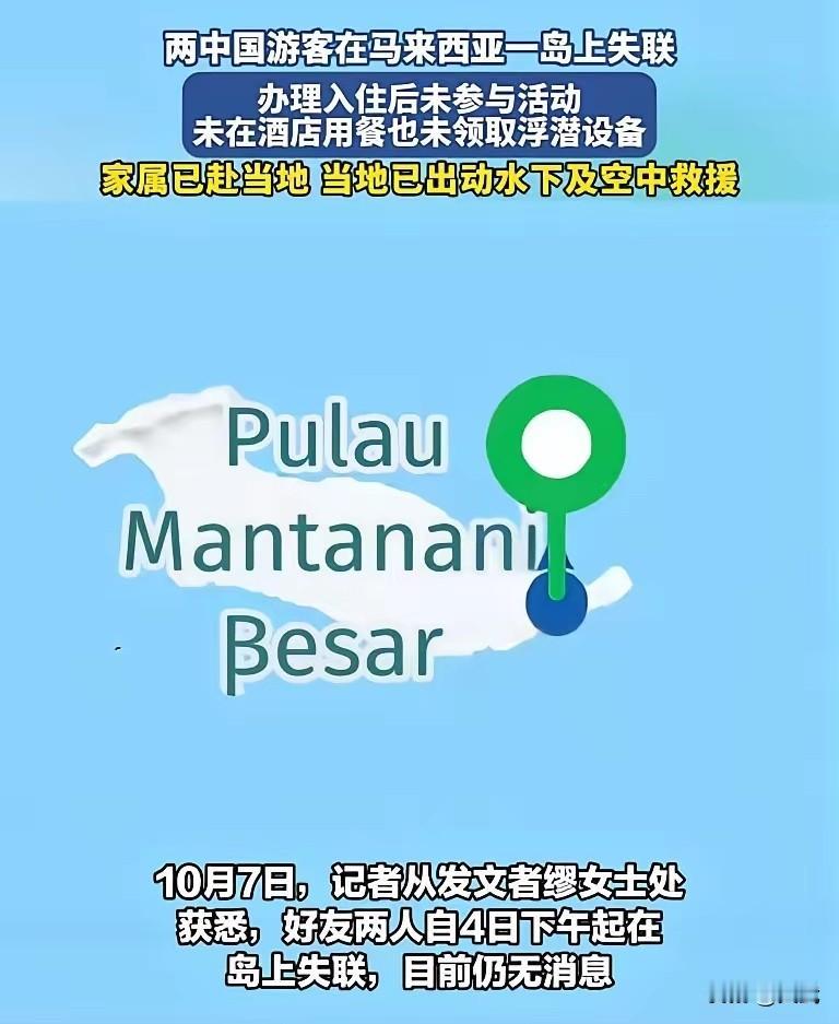 10月5日深夜,上海缪女士接到邻居电话,得知发小范琴“失踪”于马来西亚。然而,缪女士从未同行,这是28岁的范琴为安抚父母撒的谎。她的旅伴实为25岁同事于晓鹏,两人提前一月规划自由行,在朋友眼里是“合拍的旅行搭子”。 10月4日,范琴在家庭群分享沙滩照,谎称“和缪姐安顿好”;于晓鹏则告知朋友“可能去浮潜”。监控显示,两人最后并肩走向沙滩,随后换上潜水服消失于浅水区。酒店确认,他们未报名官方活动,也未领取救生设备。 次日,本该退房的两人杳无音讯。房间内行李箱整齐,防晒霜滚落,被褥未动。于晓鹏的平板电脑揭露线索:手机定位深海,蓝牙耳机一只遗落市区,另一只沉入海底。 马来西亚55名搜救人员展开行动,却只面对茫茫大海。范琴家人因暴雨被困亚庇,于晓鹏家人紧急办护照。同船游客称,离岛船等了40分钟,度假村未主动搜寻。网友爆料,美人鱼岛十月海流凶险,近年频发意外。 截至10月9日,搜救仍在继续。范琴借缪女士之名让父母安心的谎言,成了最痛心的细节。这场未完成的旅程,连同他们的故事,沉入了深海,留下家属与全网的牵挂。