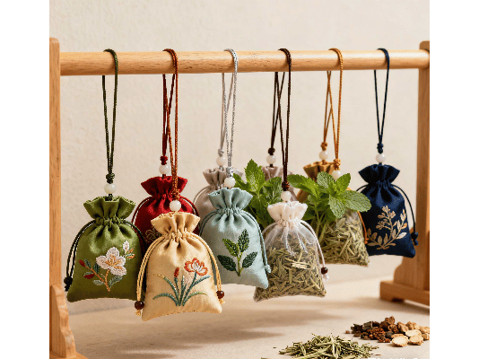 戴着中药香囊、手串