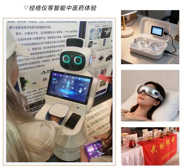 传统中医智慧+现代黑科技,让养生也能很酷!在前几次市集中颇受欢迎的体质辨识机器人也来到现场,只要花15秒钟,就能获得健康状态分析报告。还有智能香薰仪、热灸近视治疗、经络仪等智能中医药体验......让我们在现场直接开启“赛博养生”。