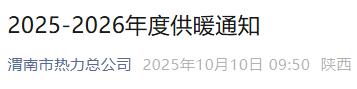 2025-2026年度采暖季即将到来,为切实做好年度供热服务工作,渭南市热力总公司就供热服务相关事项通知如下: