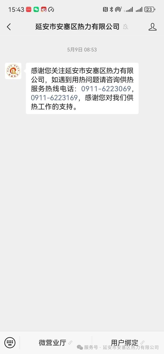 (2)线上缴费地址:通过搜索“延安市安塞区热力有限公司”微信公众号,完成线上缴费。