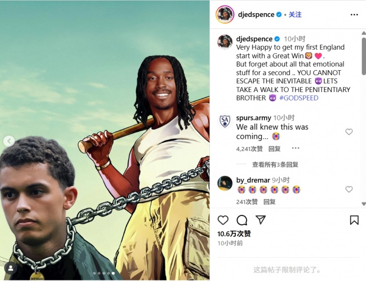 斯宾塞在社媒中连发多张赛场照,其中还附带了一张自己与约翰逊的梗图。