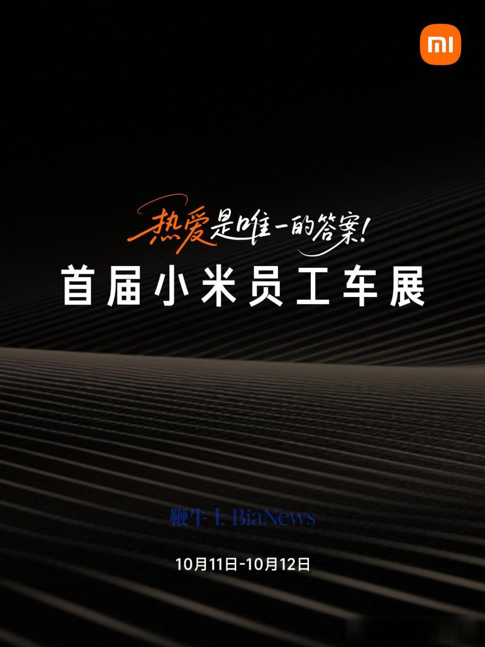 海报显示,首届小米员工车展的活动日期为10月11日-10月12日。