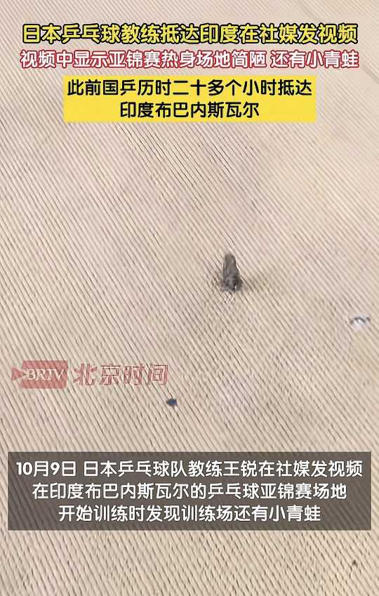 更令人啼笑皆非的是,据北京广播电视台报道,有球队主教练在场馆内拍摄到一只小青蛙活蹦乱跳的画面,直言印度办赛环境“脏乱差”。此外,当地高温高湿的气候滋生了大量蚊虫,也让参赛选手们备受困扰。