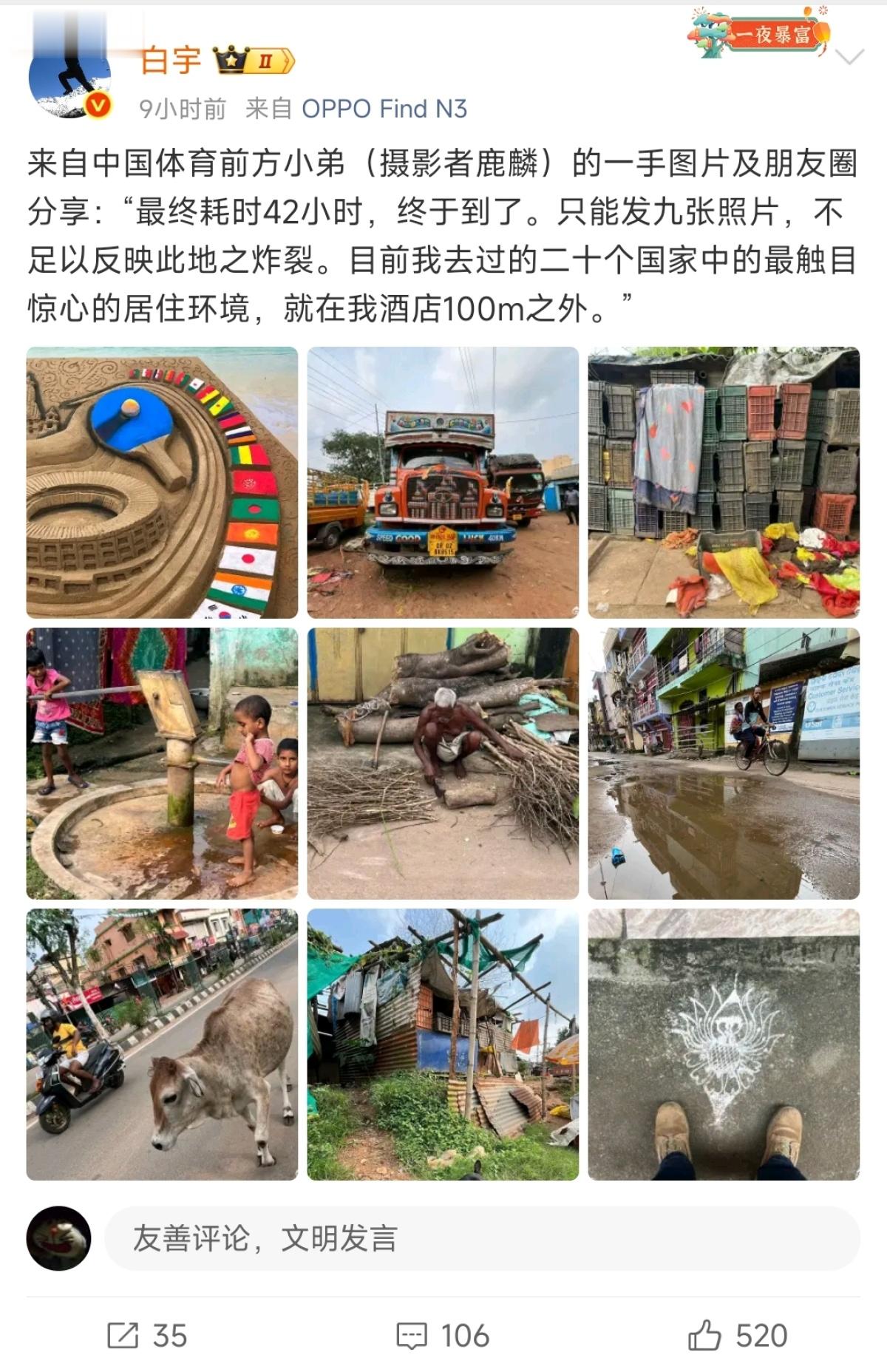 “感觉空气都辣眼睛,目前还在适应中,酒店条件尚可,但水质确实不行。”随行的中国记者也在社交媒体上吐槽“环境恶劣”。不过据悉,国乒的后勤保障已经到位。矿泉水、专用药品、消毒设备等物资一应俱全,全力保障队员以最佳状态迎接比赛。