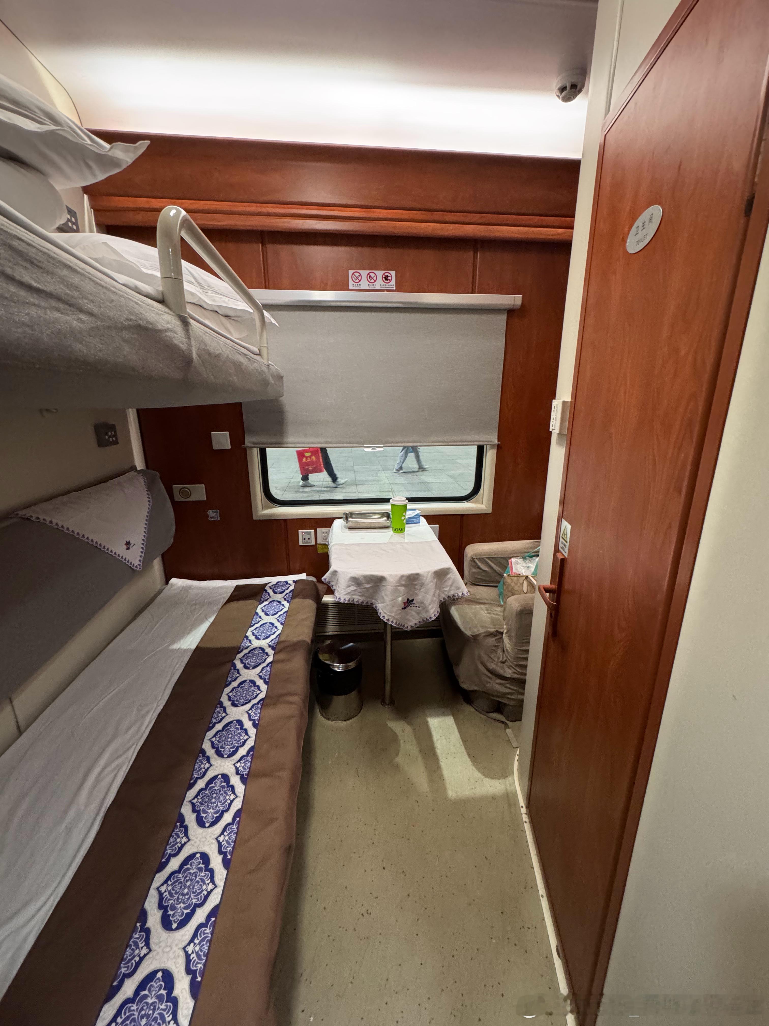 期待了好几年的绿皮火车之旅,高级软卧,俩人小包厢,带独立卫生间,感觉真不错绿皮火