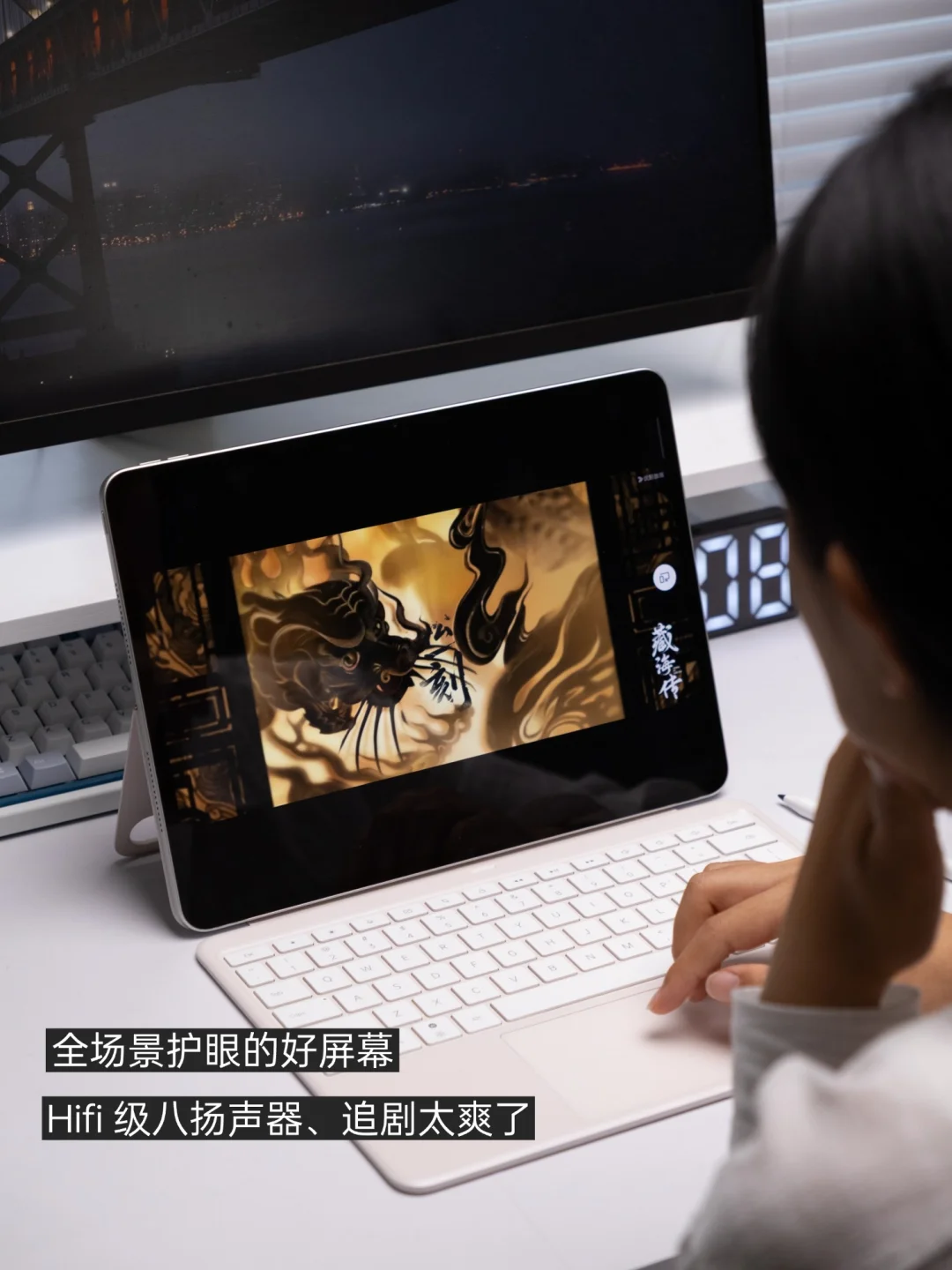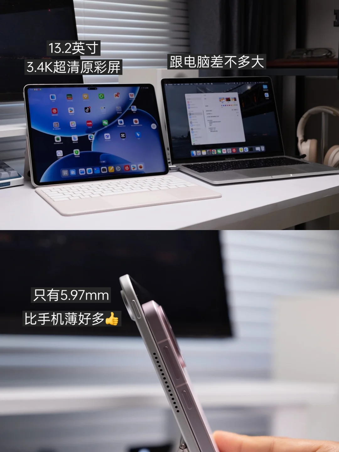 13.2英寸、3.4K超清原彩屏,跟笔记本电脑差不多大了。轻薄机身,🍎 味十足,好看又好用,轻办公、娱乐特别舒服
