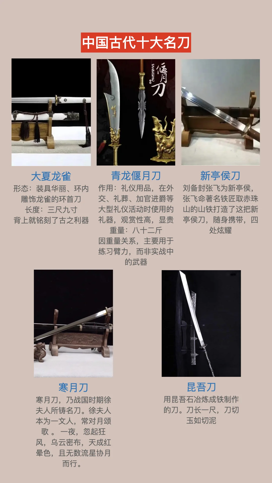 唐横刀 陌刀 仪刀 青龙偃月刀 大夏龙雀 障刀 昆吾刀