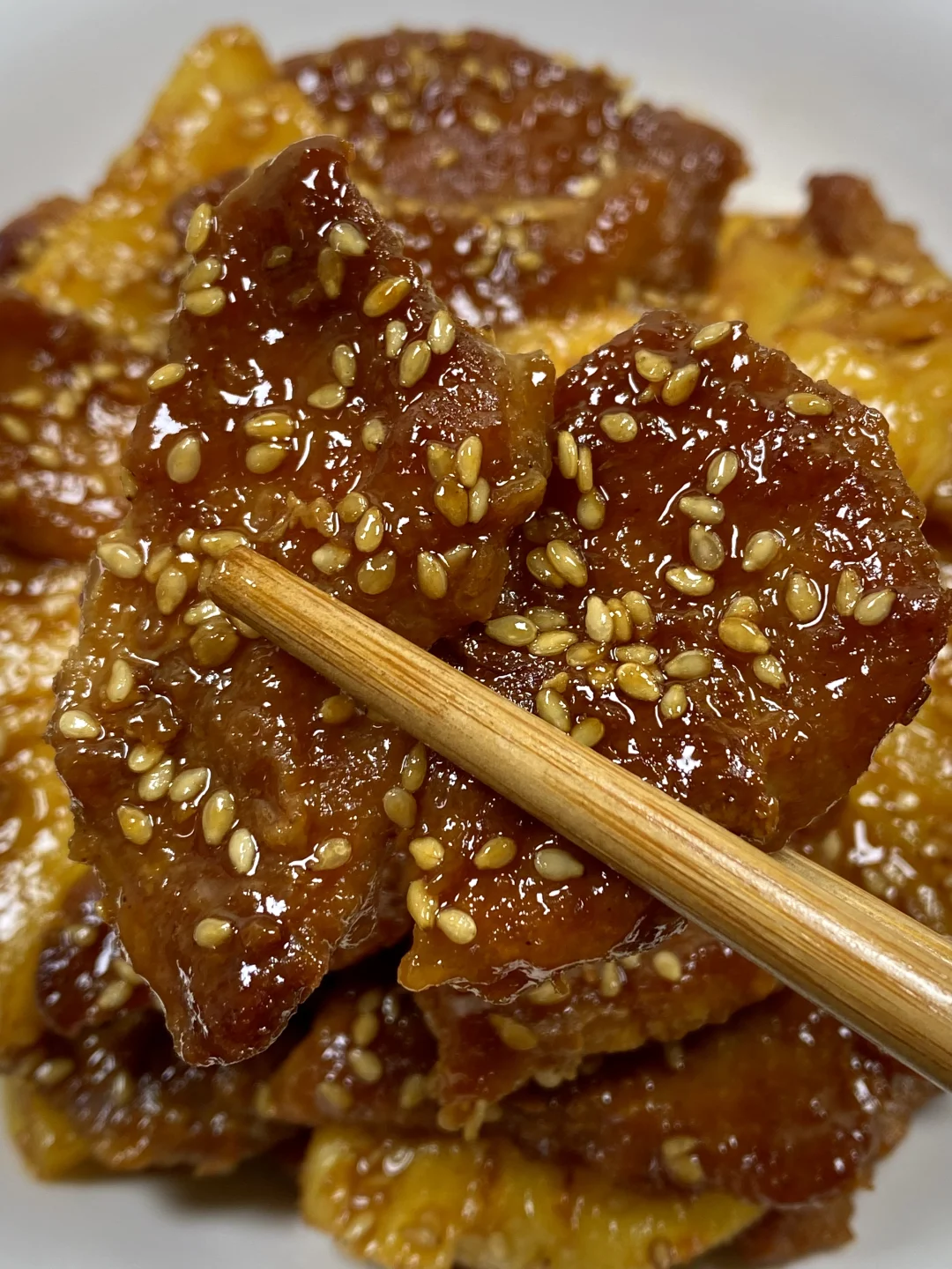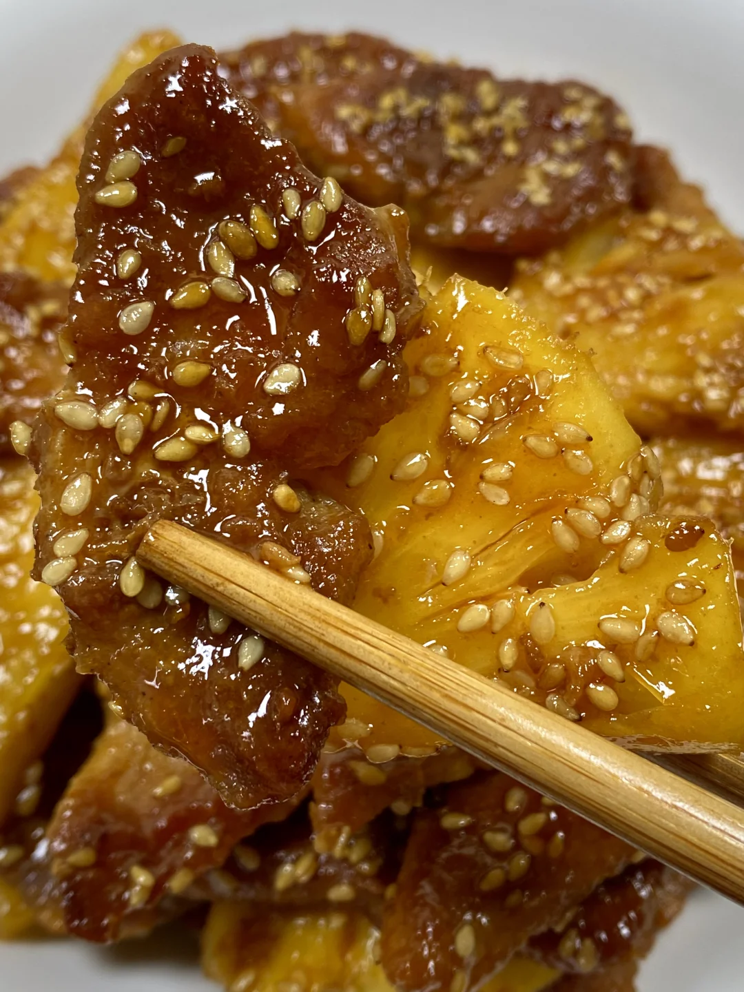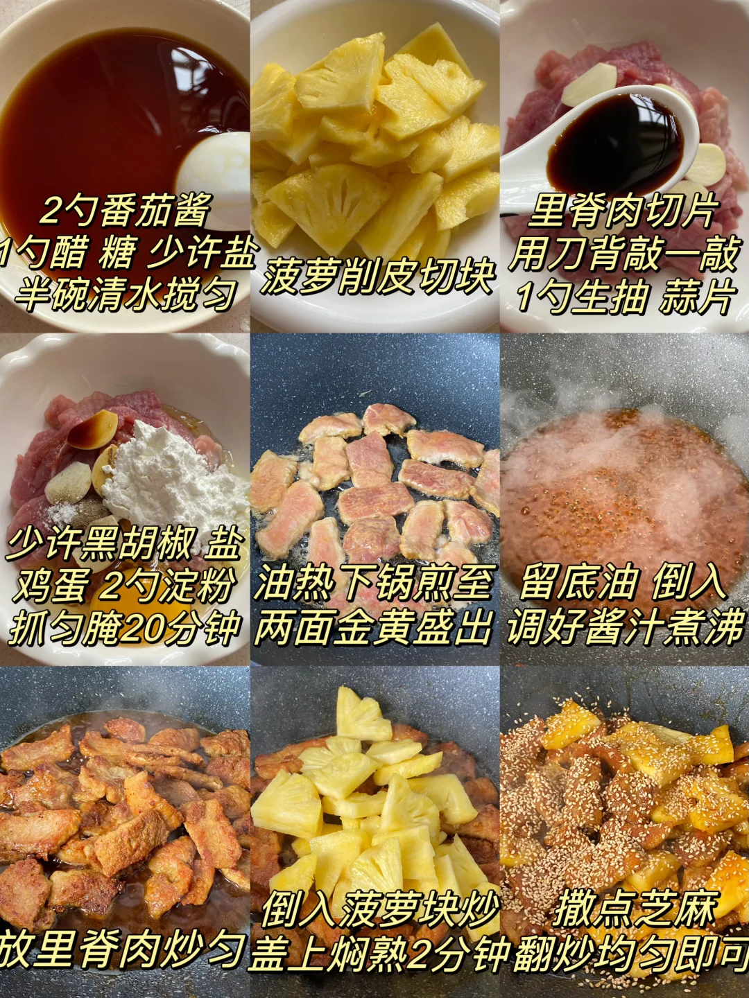 今天分享的是菠萝猪排,巨好吃😋 焦香多汁的猪排+酸甜清爽的菠萝🍍,裹上酱汁一口下去酸甜爆汁💥,味道真的绝了!果香浓郁,好吃到跺脚!我家挑食的小孩连吃三块都不够,一上桌就秒光!试过的姐妹都说绝了[派对R] 食材:菠萝🍍 里脊肉 鸡蛋 淀粉 芝麻 做法简单,步骤看图集哦👆