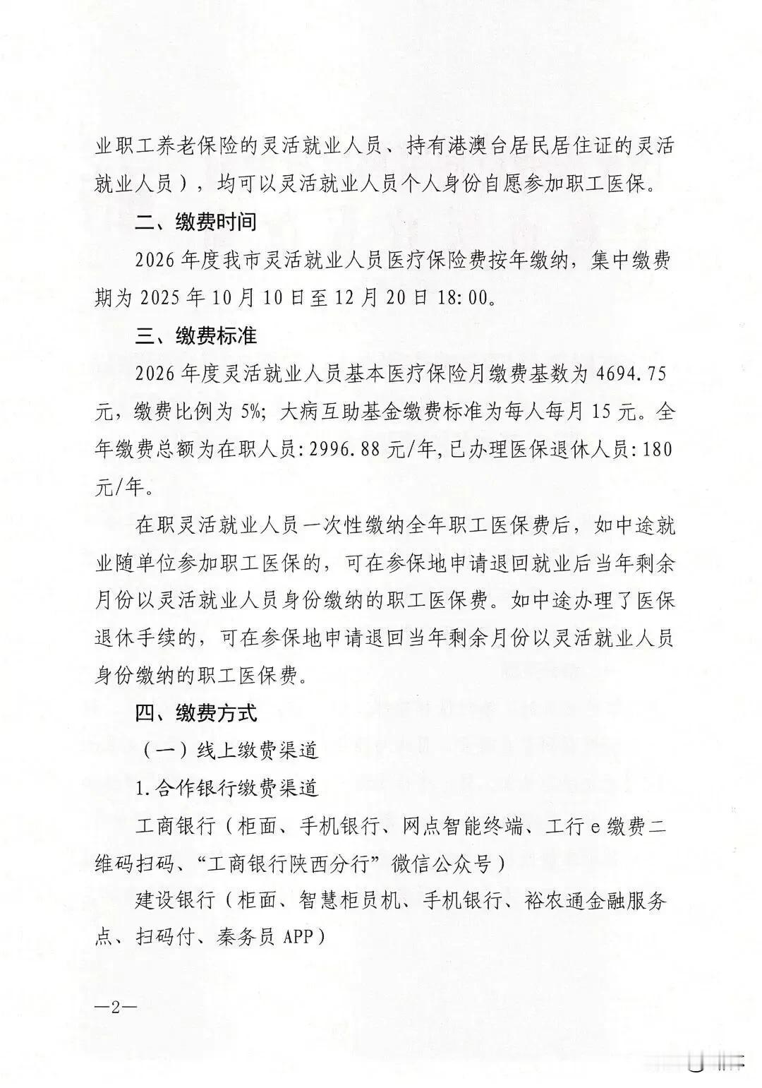 宝鸡市2026年度灵活就业人员参加城镇职工基本医疗保险参保缴费通告