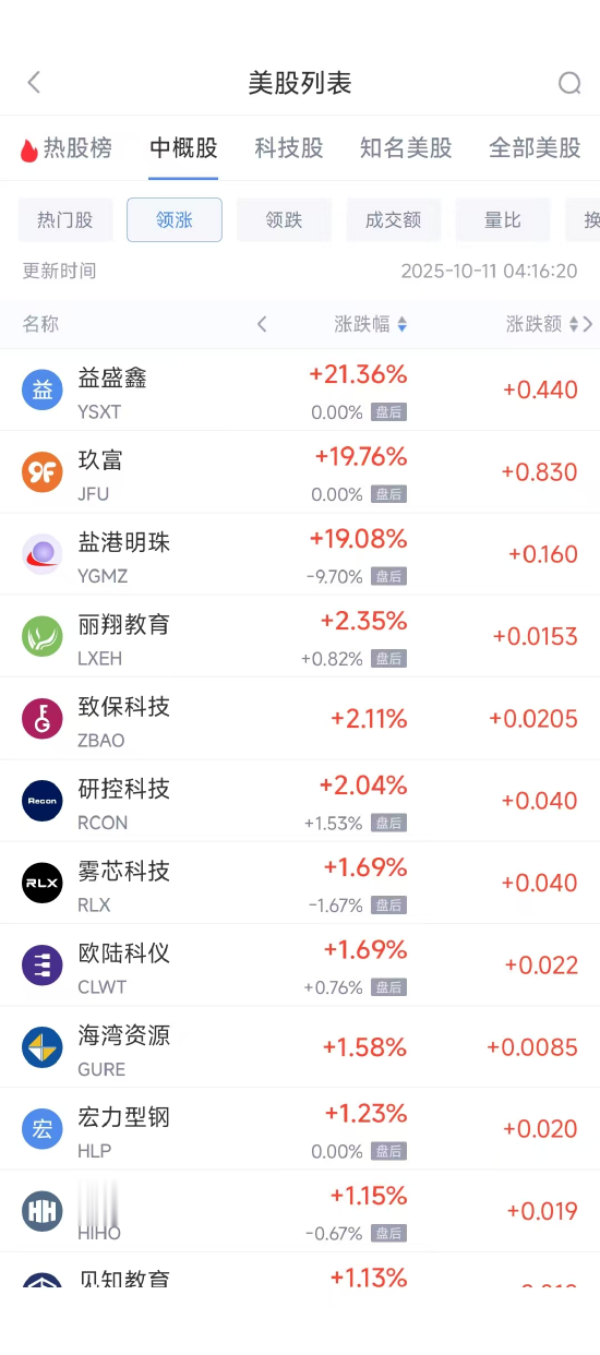 上涨股当中(按市值从高到低),雾芯科技涨1.48%。