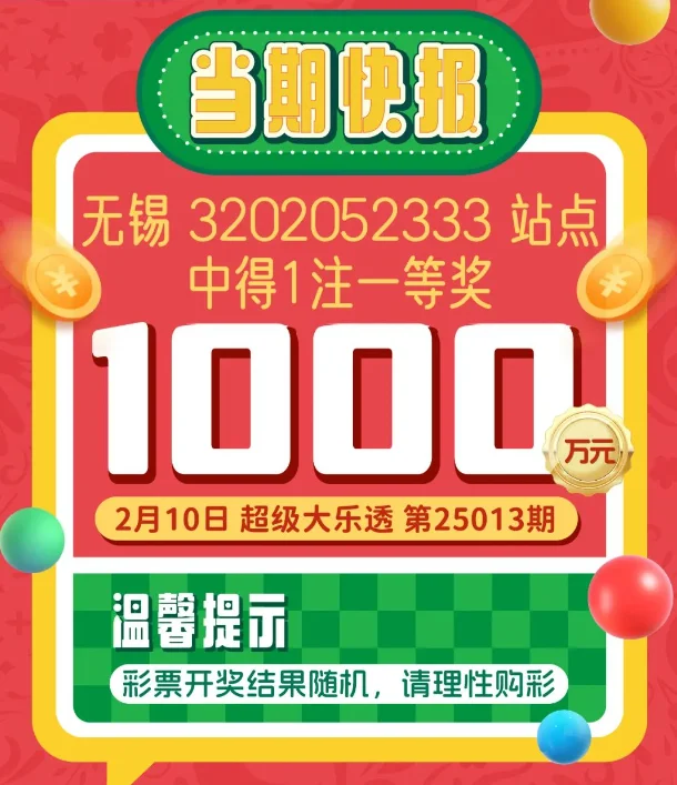 昨晚,无锡有人中奖了,1000万!江苏又诞生一位千万富翁!