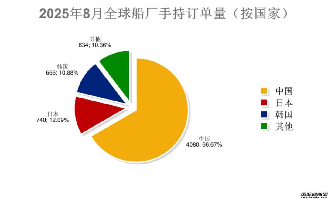 结果就是,4月份公布的美国特别港务费之后,前几个月还有很大冲击,到下半年开始,情况就趋于稳定。八月,全球船厂手持订单总量,中国还是占据三分之二的绝对领先。