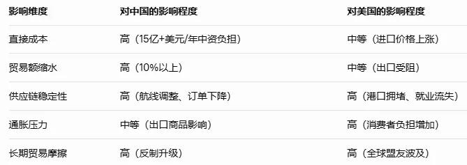 以主流10000箱集装箱船为例:外国船东购买中国制造船舶,美线单航次要增加900万元的成本。这个费用到2028年会涨到250美元/箱,单次就是1800万元;全年最多征收5次,也就是中国制造的船舶,每年要交五千万到一亿给美国当局。