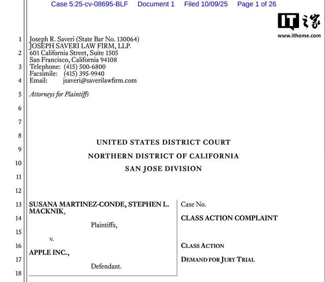 苏珊娜・马丁内斯-康德(SusanaMartinez-Conde)和斯蒂芬・麦克尼克(StephenMacknik)两名来自纽约州立大学健康科学大学的学术作者已对苹果公司发起集体诉讼。