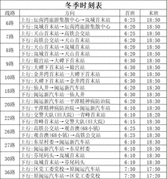 记者从闽运平潭公司了解到,综合考虑季节特点以及乘客作息、通勤时间变化,10月9日起,平潭部分线路启用冬季运行时刻。